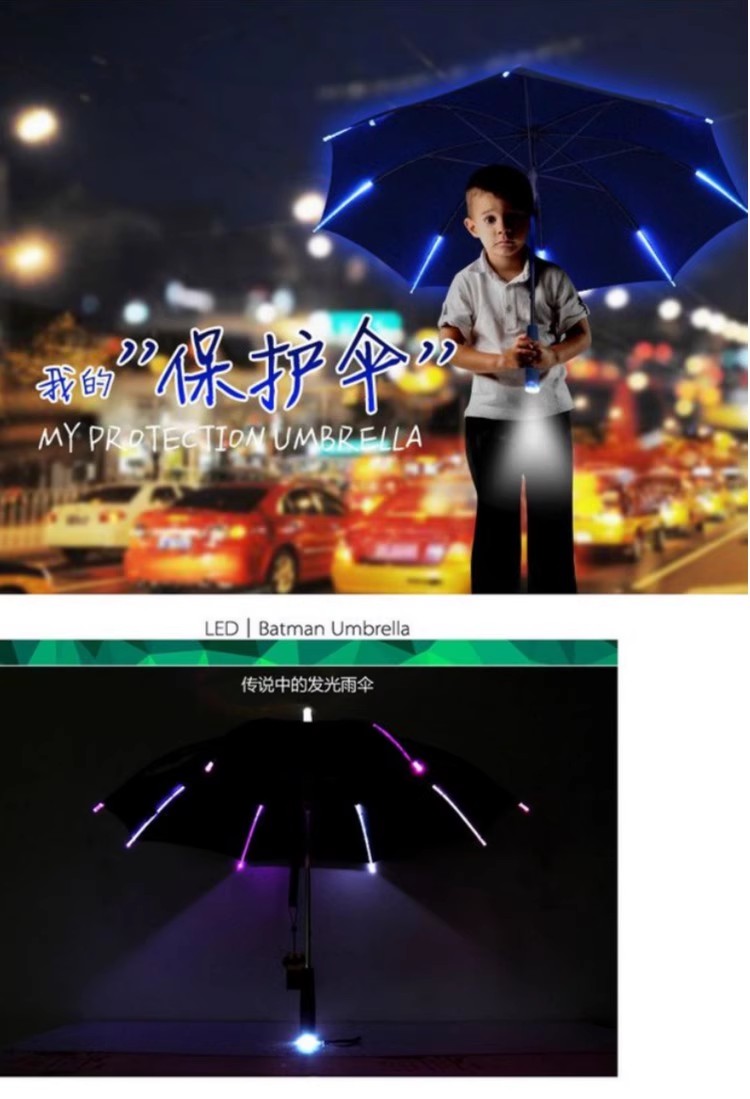 المساعدة في الإضاءة: تم تصميم بعض مقابض المظلات على شكل مصابيح كهربائية، وهي مناسبة لإضاءة سطح الطريق أثناء المشي ليلاً.
