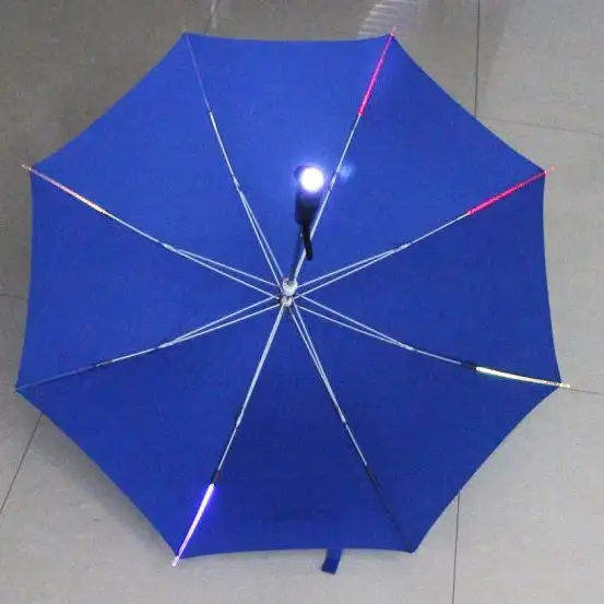 تم تضمين حافة أو هيكل المظلة مع شرائط إضاءة LED، والتي يمكن شحنها من خلال USB أو تشغيلها بواسطة البطاريات لإصدار ضوء أحادي اللون أو متعدد الألوان (مثل الضوء الأبيض، وتدرج RGB). تدعم بعض المنتجات ضبط السطوع أو وضع الوميض.